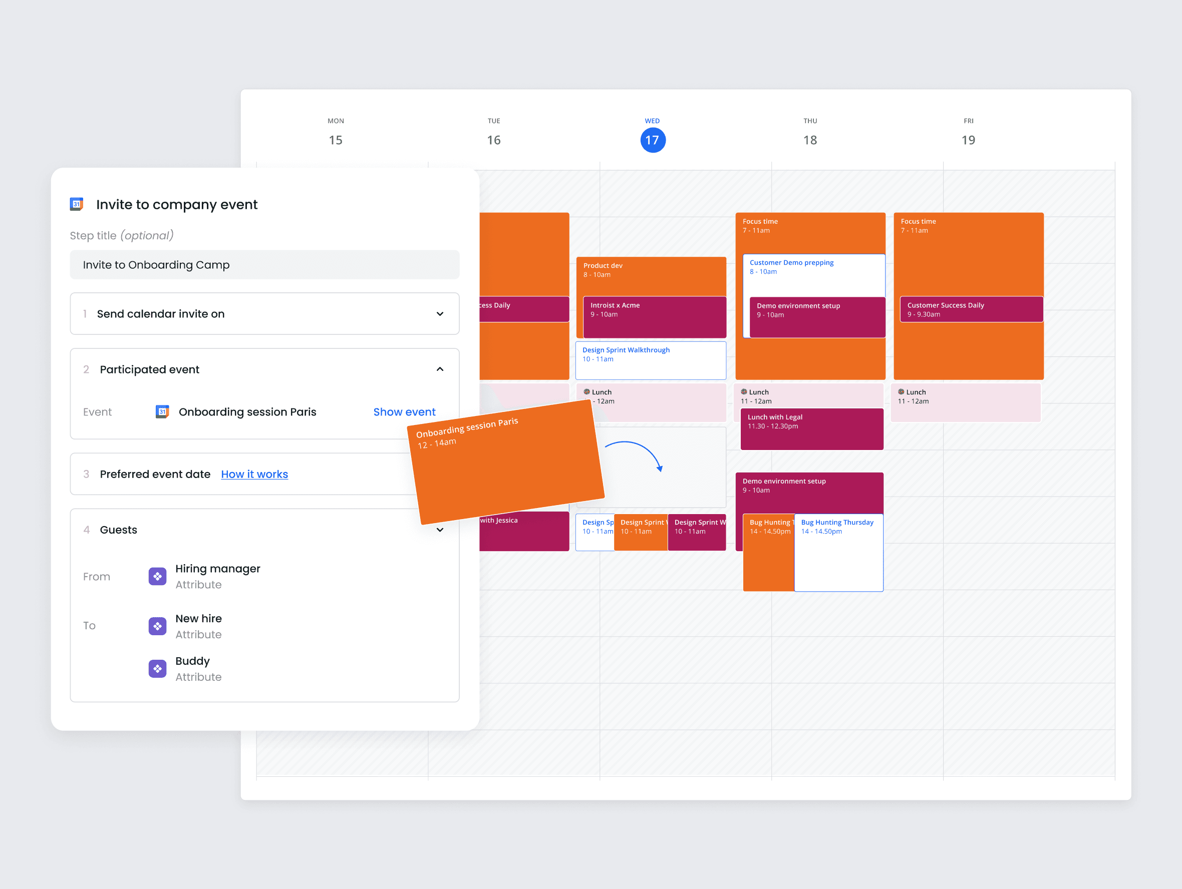 Introist's scheduling tool is designed to navigate through the calendars of all participants to identify suitable time slots. It operates within predefined parameters, such as ensuring that certain meetings occur within a specific time frame after the new hire's start date. This flexibility is crucial; for instance, a meeting that needs to be held within the first two weeks doesn't have to be rigidly set for the third day. This adaptability helps in accommodating the varying schedules of all involved parties.